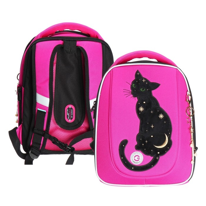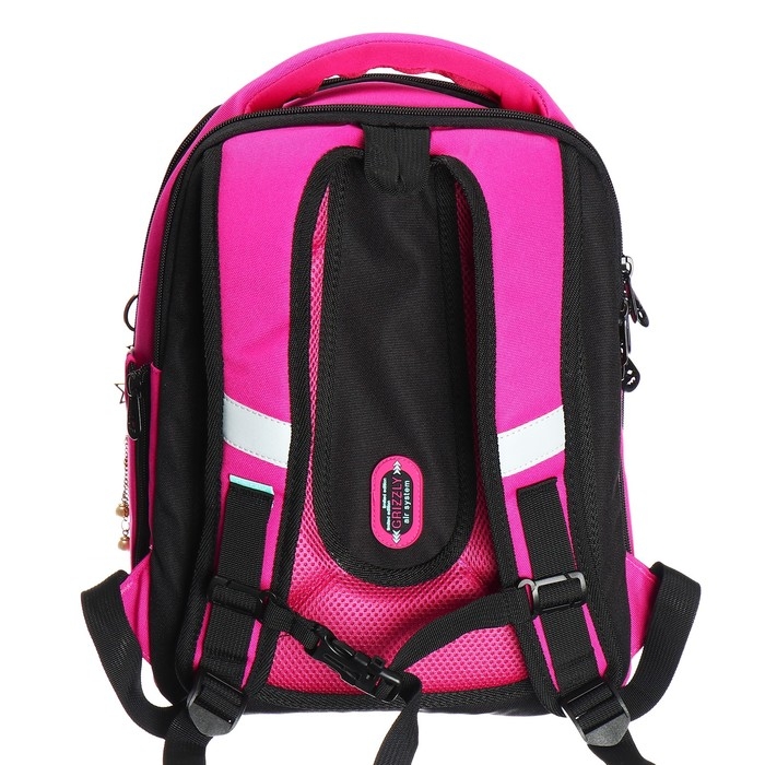 Ранец каркасный, 36 х 29 х 18 см, Grizzly, + брелок, плюшевый, фуксия