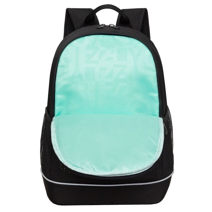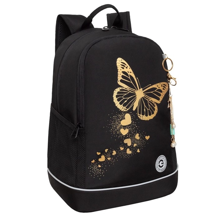 Рюкзак школьный, 38 х 28 х 18 см, Grizzly, эргономичная спинка, + брелок, чёрный