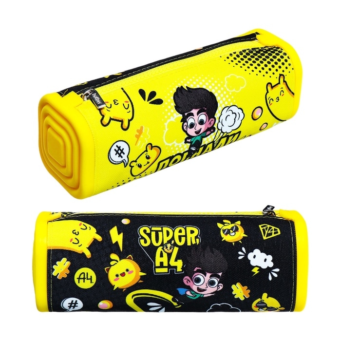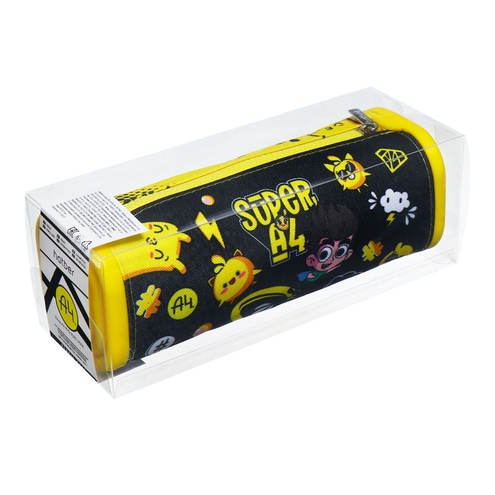 Пенал мягкий,1 отделение, квадро, 70 х 200 мм, Hatber "Влад А4" силикон+текстиль, чёрный/жёлтый Npn_72252