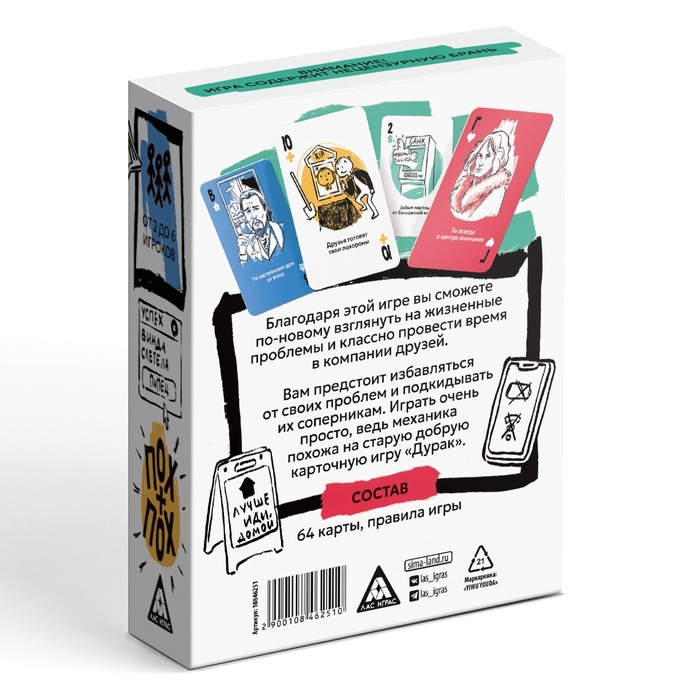 «Буква Ю, ПОХУ» – это весёлая настольная игра для взрослых, которая мастерски балансирует между отдыхом от проблем и погружением в них!