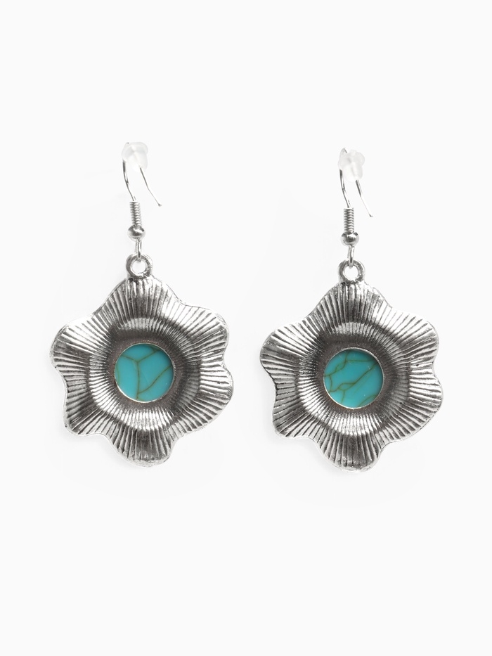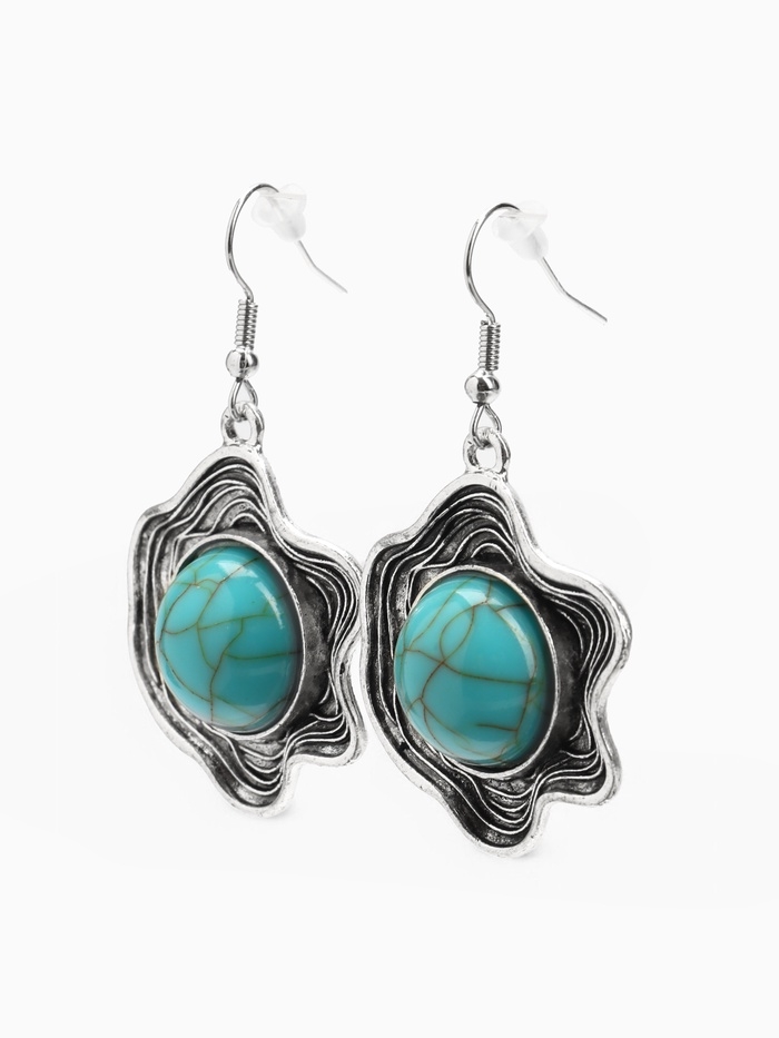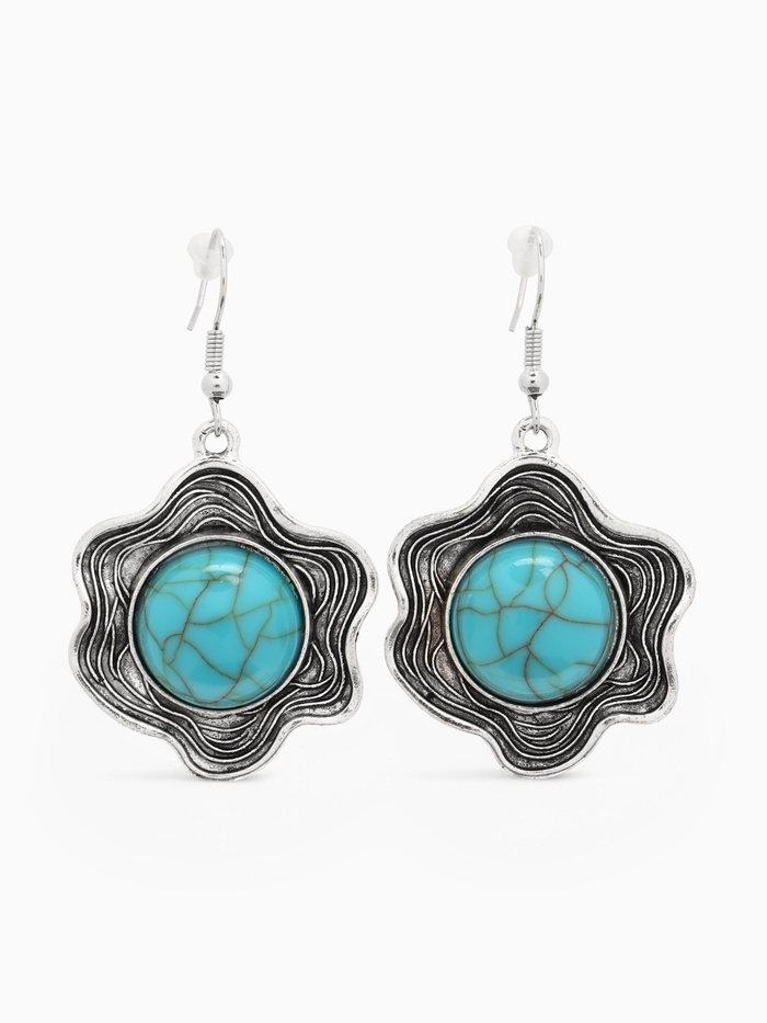 Серьги «Бирюзовый мир» круг в волне, голубые в чернённом серебре