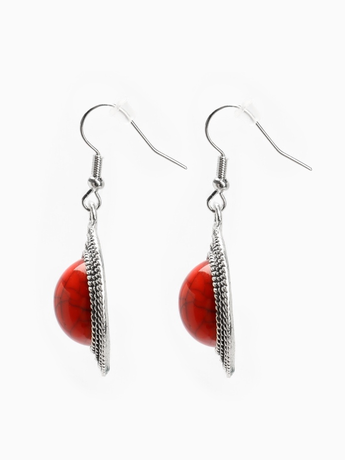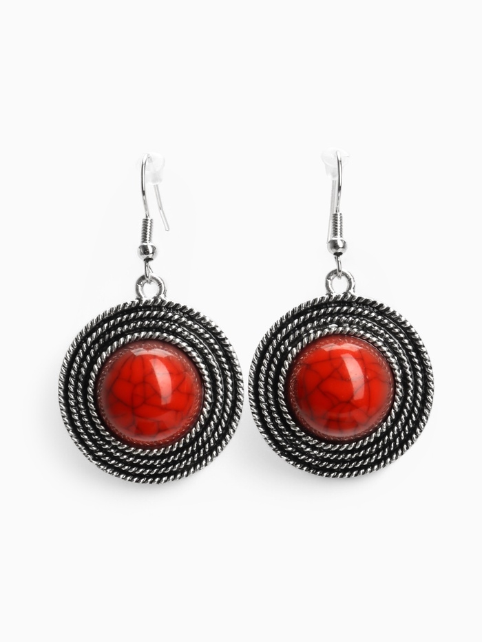 Серьги «Круг» винтаж, красные в чернённом серебре