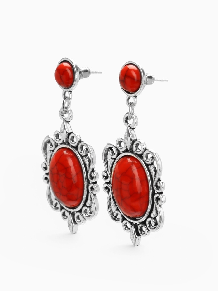 Серьги «Капля» винтаж, красные в чернённом серебре