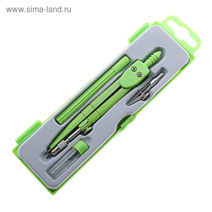 Состав готовальни: 4 предмета (циркуль, грифель, ручка-удлинитель, рейсфедер) в пластиковом пенале.