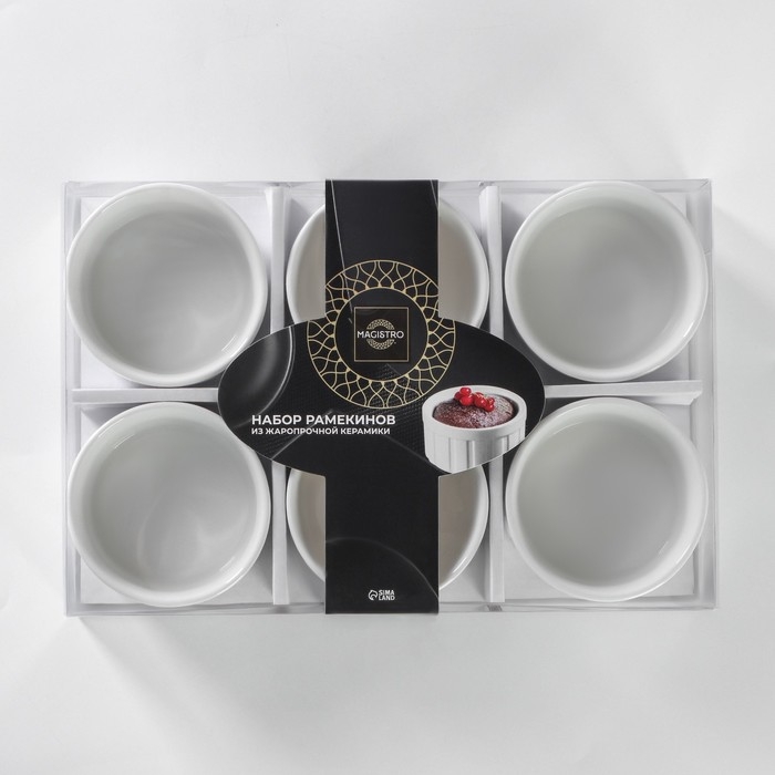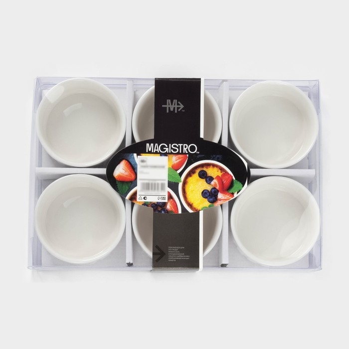 Набор рамекинов из жаропрочной керамики Magistro «Каспар», 6 предметов: 200 мл, цвет белый