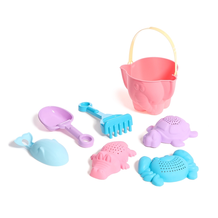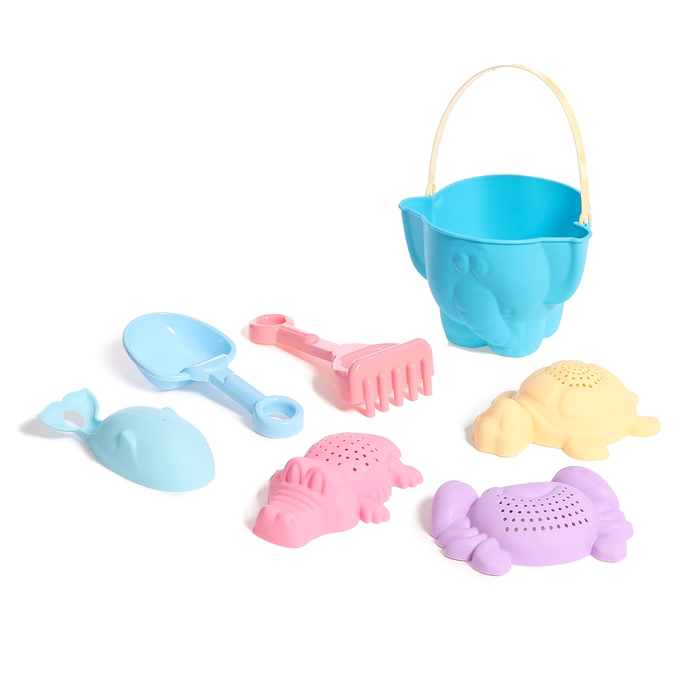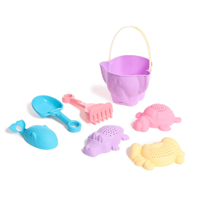Песочный набор №9 «Африка»: ведро, 4 формочки, лопатка, грабли, МИКС