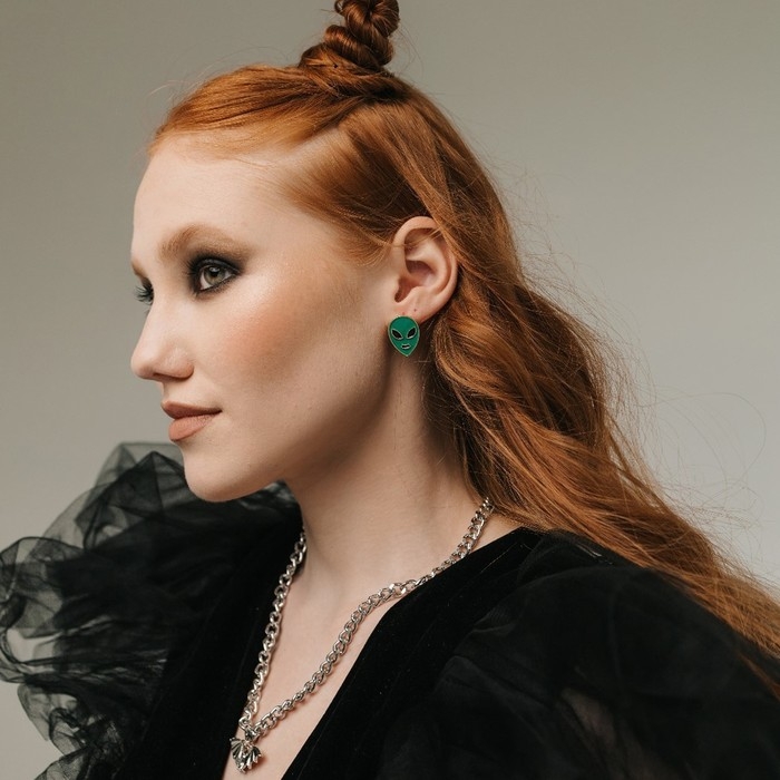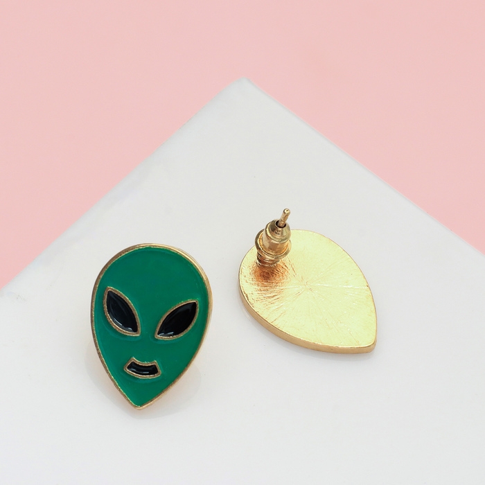 Серьги с эмалью «Инопланетяне», цвет чёрно-зелёный в золоте