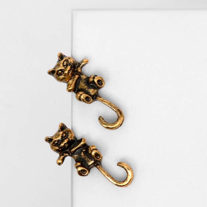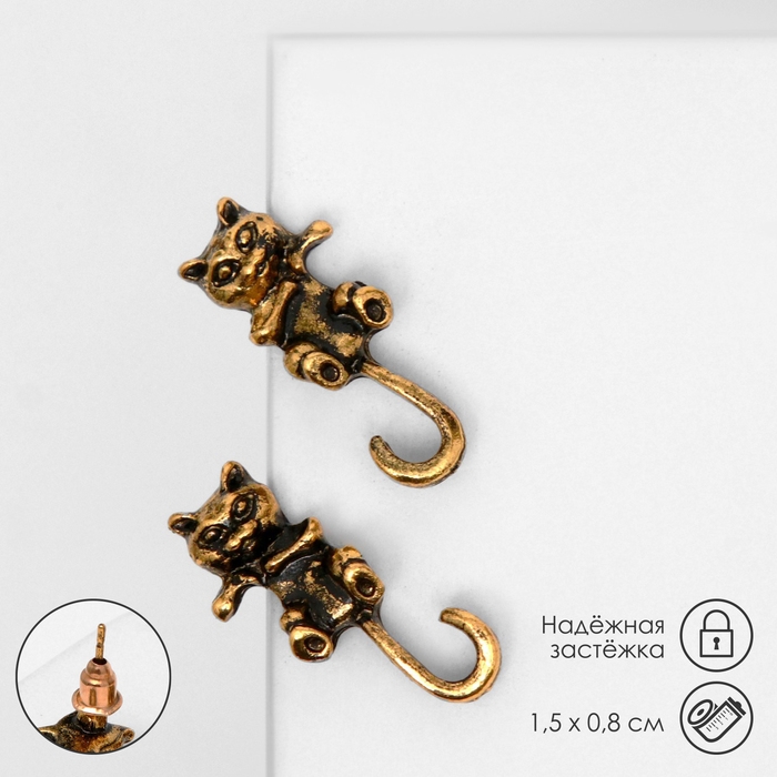 Серьги металл «Котята» хвостатые, цвет чернёное золото
