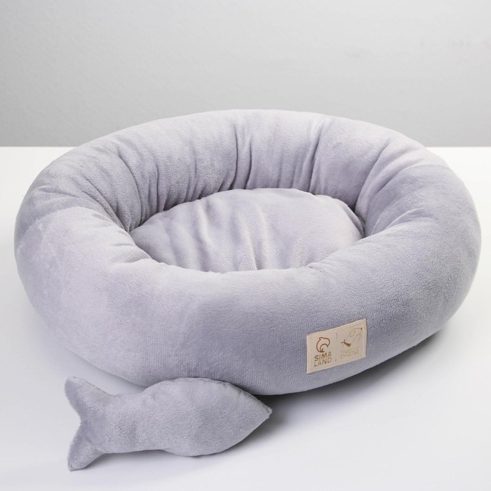 Лежанка подойдёт для кошки некрупной породы. Изготовлена из мягкого и тёплого плюша, наполнитель — синтепон. Набивка плотная, поэтому изделие хорошо держит форму и комфортно для питомца.