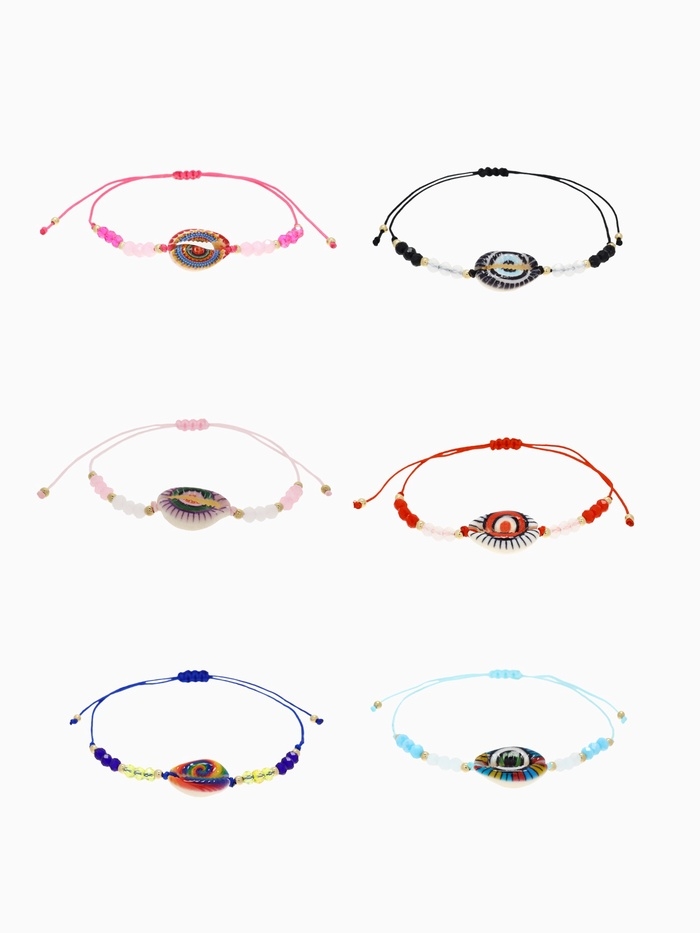 Браслет-оберег «Глазик» ракушка (неделимая фасовка 12 шт., цена за шт.), цветной в золоте
