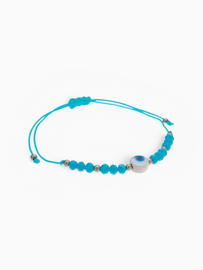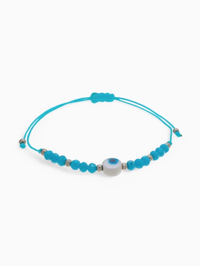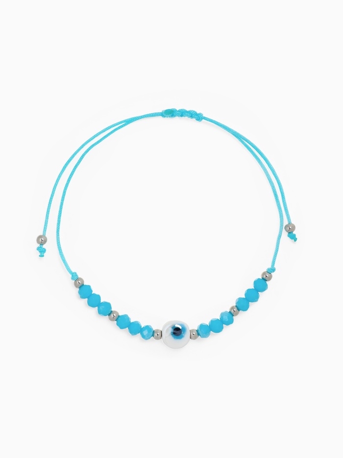 Браслет-оберег «Глазик» на нити, голубой в серебре