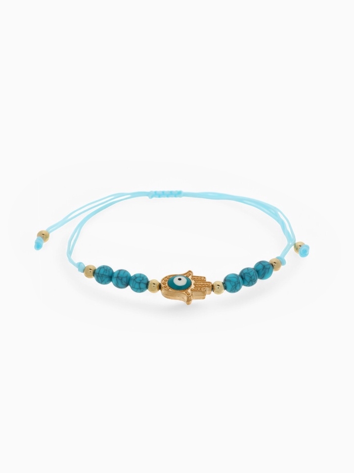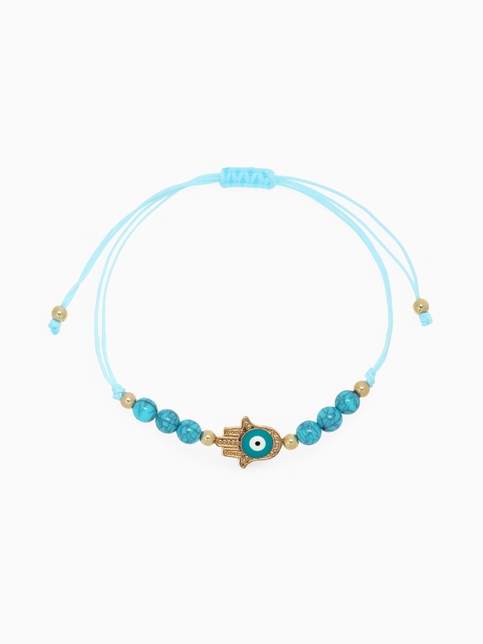 Браслет-оберег «Глазик» на нити, рука Хамса, цвет голубой в золоте