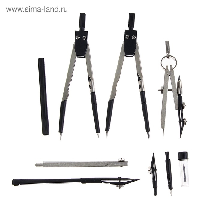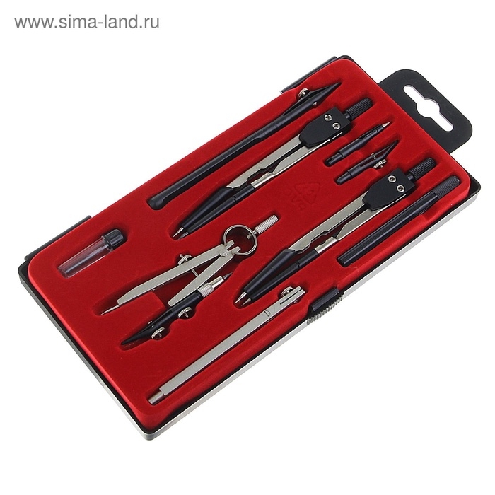Готовальня 9 предметов (3 циркуля, 2 рейсфедера, 3 удлинителя, грифель, центрик), в пластиковом пенале