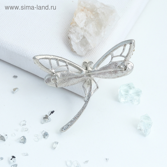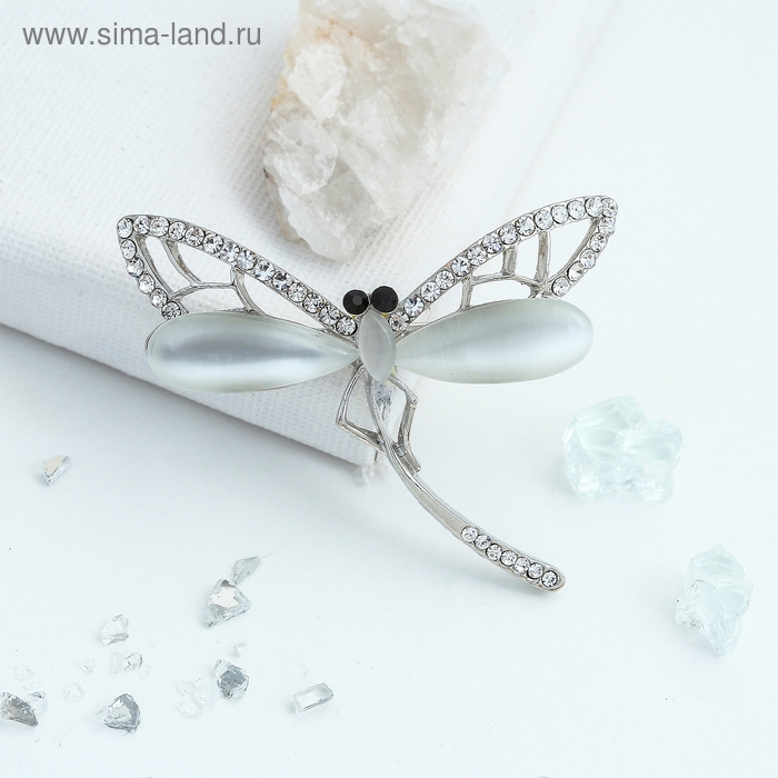 Брошь «Стрекоза» порхающая, цвет белый в серебре
