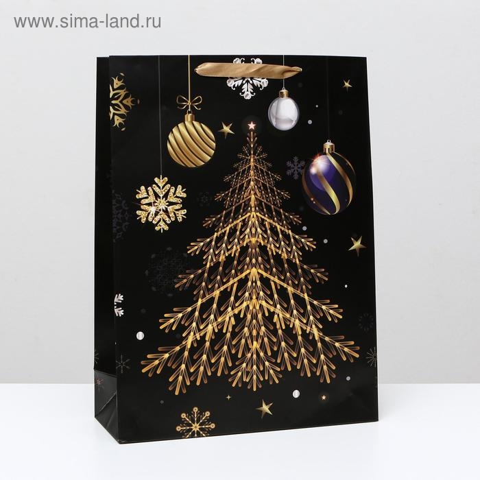 Пакет ламинированный "Золотистая ёлка", 31 x 42 x 12 см