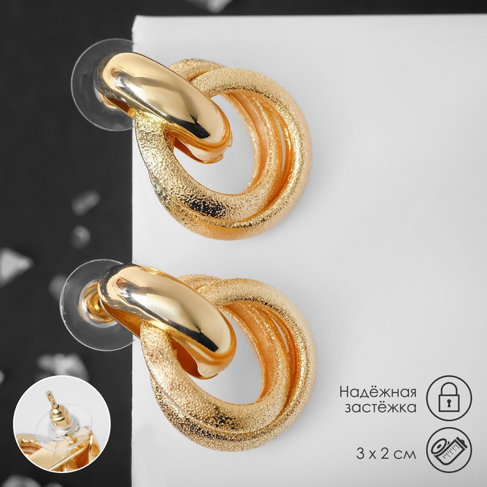Серьги металл «Фьюче» круги плетения, цвет золото