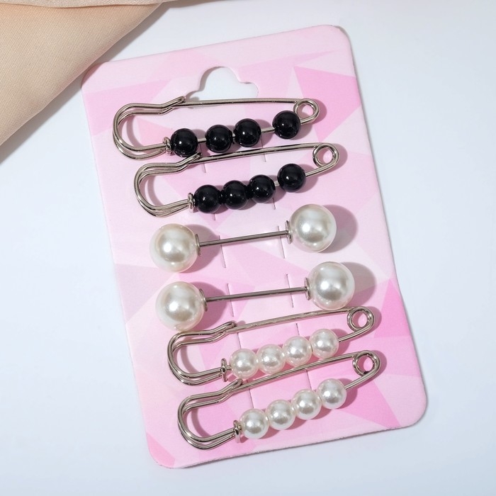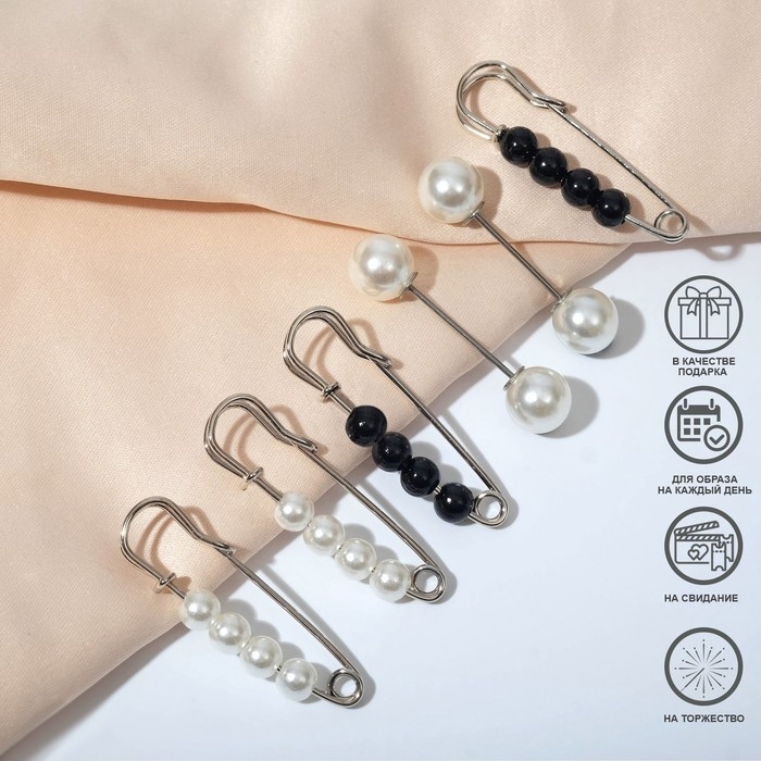 Данная булавка – настоящая находка для модниц, предпочитающих нетривиальные аксессуары. Брошь-булавка станет не только оригинальным дополнением вашего наряда, но и позволит без труда приколоть при необходимости палантин или шейный платок. Используйте её в качестве украшения шляпки, рубашки или галстука. Набор булавок (6 шт.) «Жемчужины», 3,5 см, цвет чёрно-белый в серебре внесёт особую нотку изящности в ваш образ.