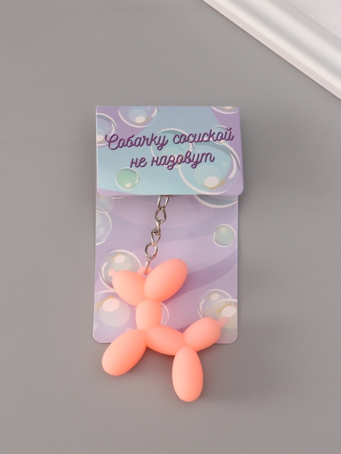 Брелок резина "Воздушный шарик - Собачка" розовый 5х5,5 см