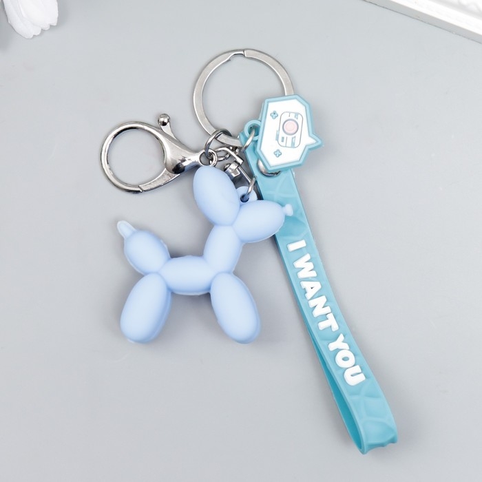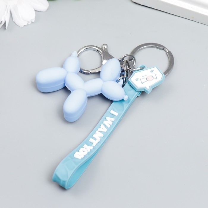 Брелок резина с карабином и браслетом "Воздушный шарик - Собачка" небесный 21х5,4 см