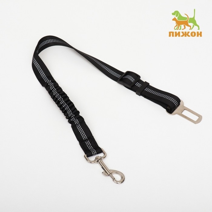 Ремень-поводок безопасности для собак,амортизирующий,светоотражающий, 50-70 х 2,5 см,черный