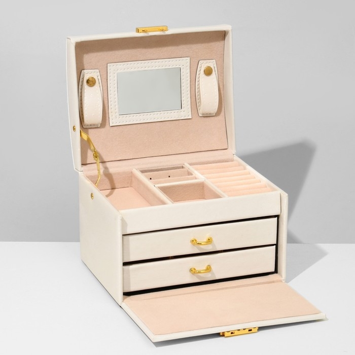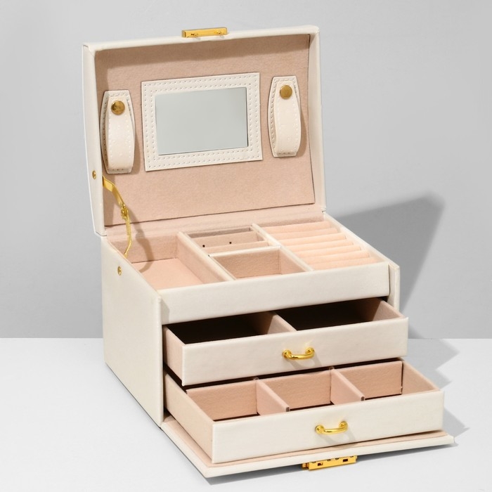 Подставка для украшений «Шкатулка» раздвижная с зеркалом, 17.5×14×13.5, цвет белый