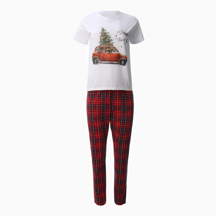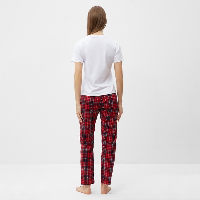 Комплект (футболка,брюки) домашний женский, цвет белый/красная клетка, р-р 50