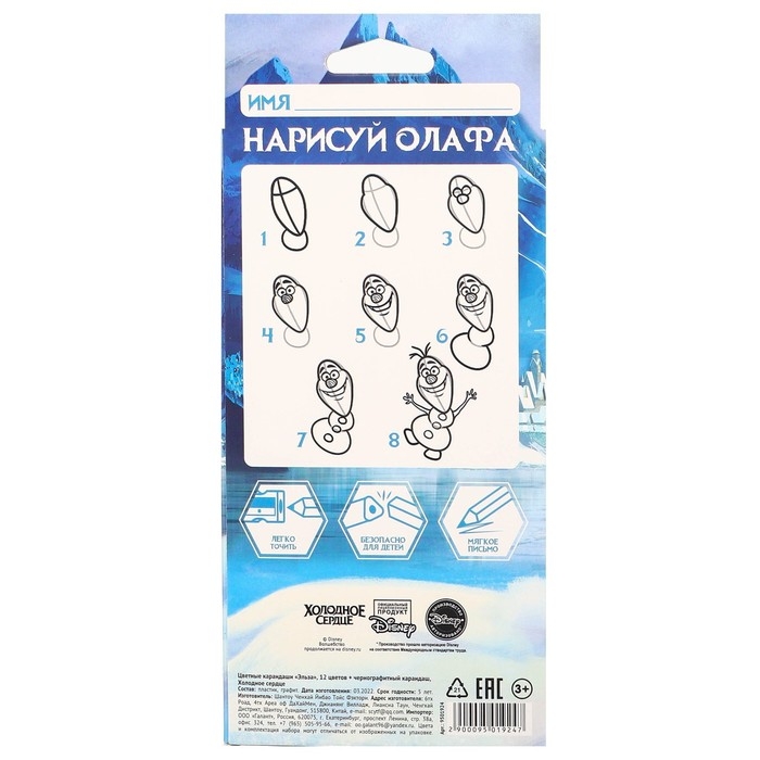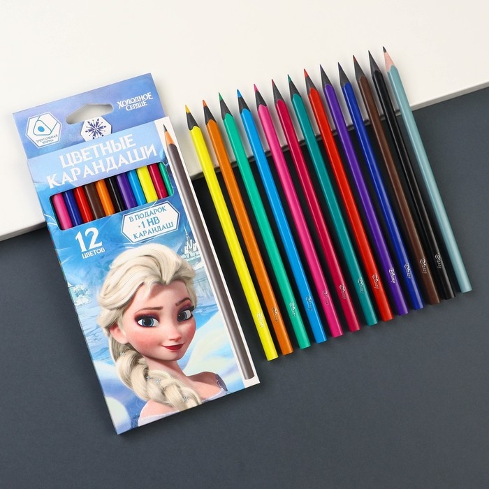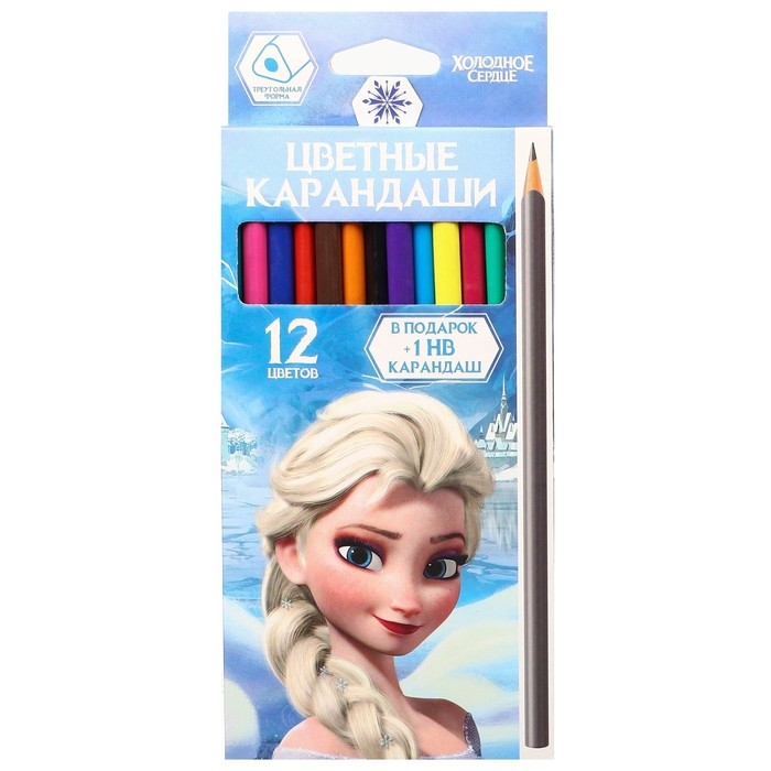 Цветные карандаши, 12 цветов, трехгранные, Холодное сердце