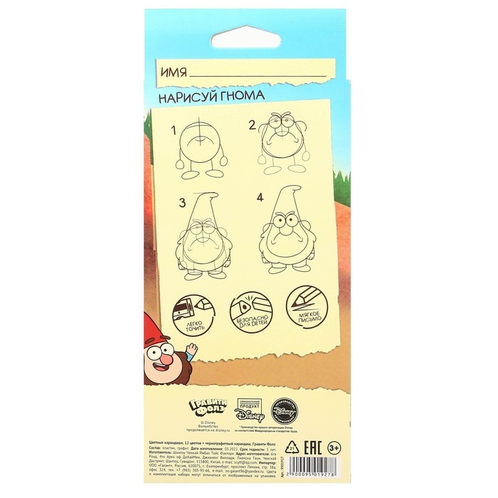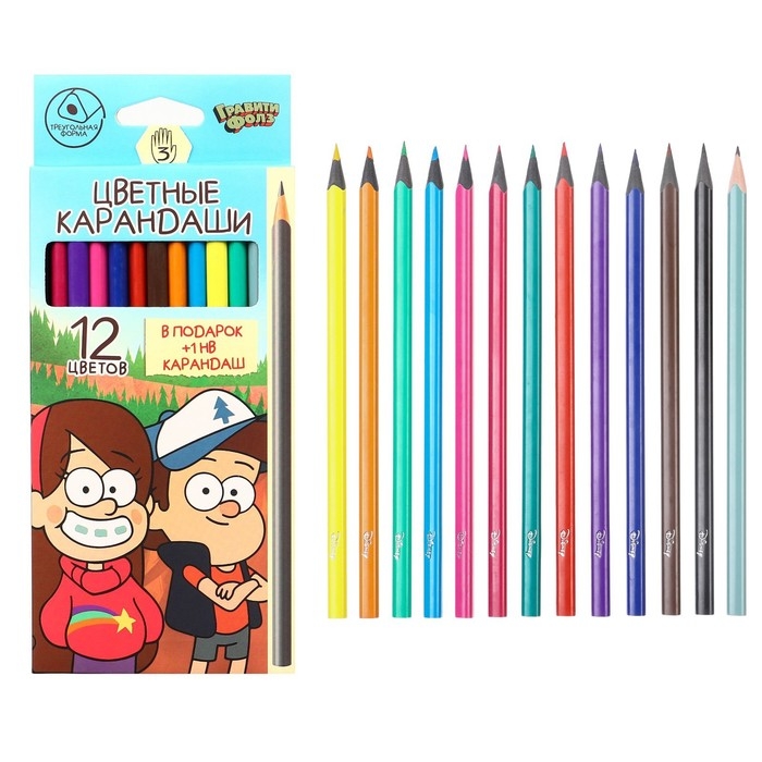 Цветные карандаши, 12 цветов, трехгранные, Гравити Фолз