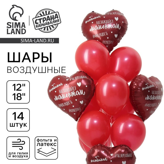 Набор воздушных шаров «Наслаждайся моментом», красный, фольга, латекс, 14 шт.