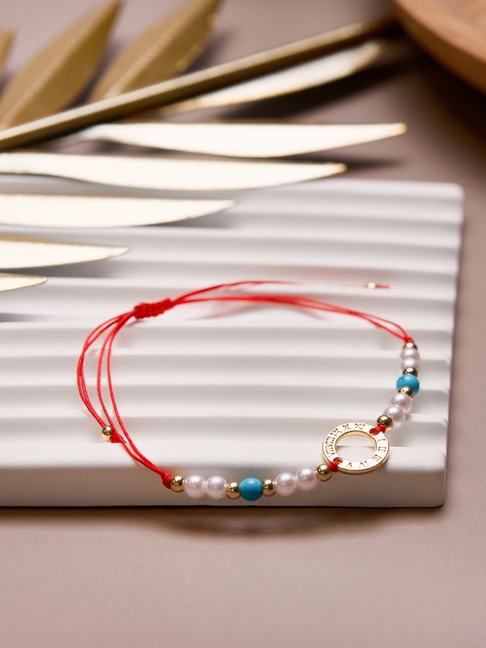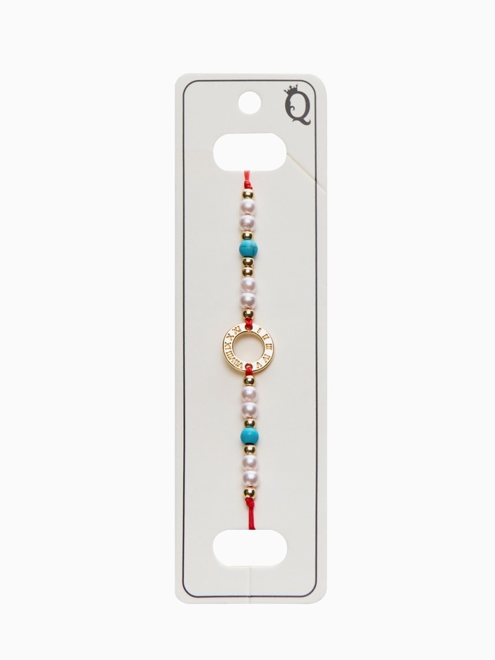Браслет-оберег «Красная нить» женский, защита, кольцо мини, голубо-белый в золоте, d=6