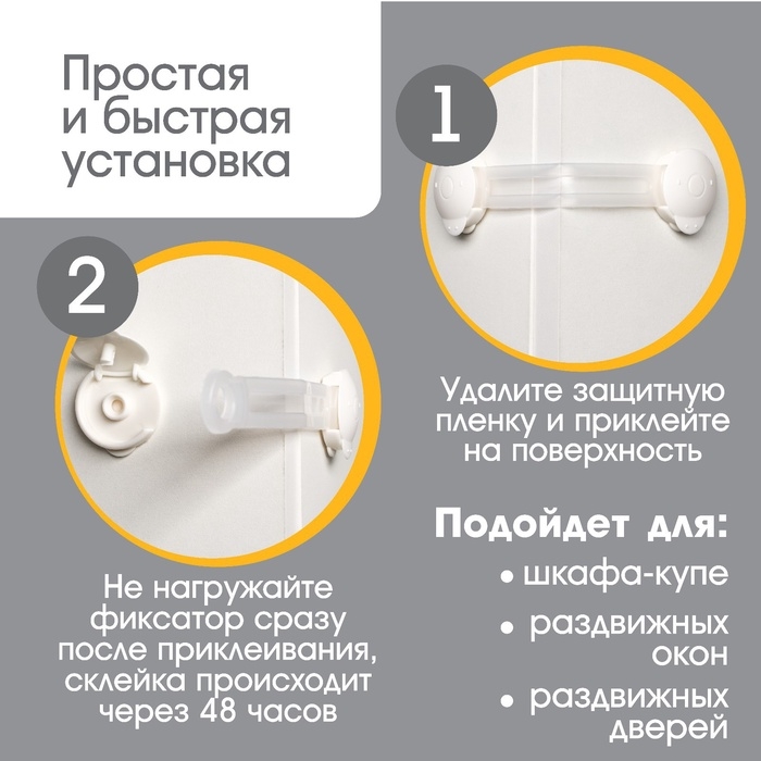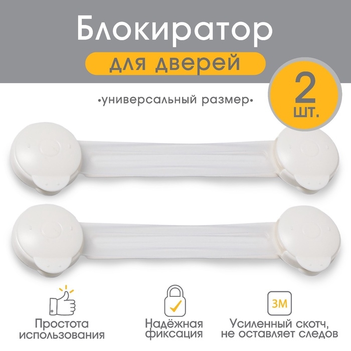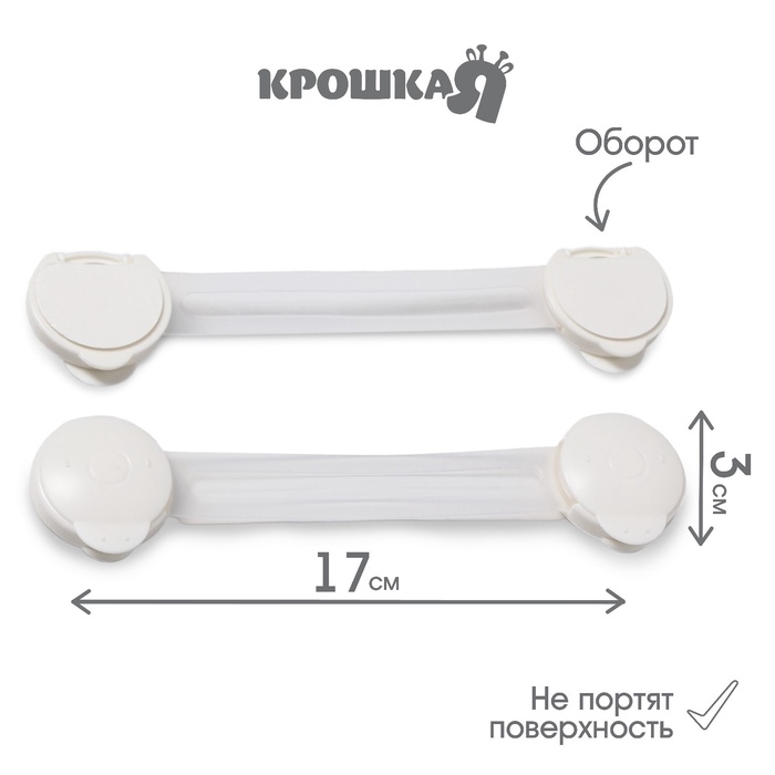 Набор блокираторов для дверей и ящиков, гибкий, 17 см, 2 шт., цвет прозрачный/белый, Крошка Я