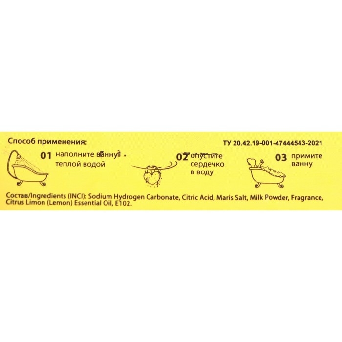 Способ применения: наполните ванну тёплой водой. Опустите в воду сердечко. Примите ванну.