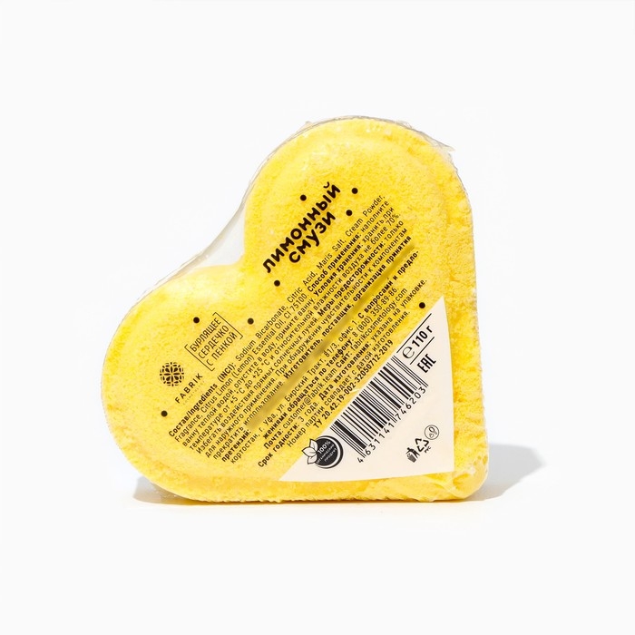 Кто сказал, что горячая ванна не может быть бодрящей? Он просто ещё не знаком с бурлящим сердечком "Лимонный смузи". Чудесная цитрусовая пена подарит вам заряд энергии и подарит стремление к новым победам. Долой усталость, здравствуй движение!