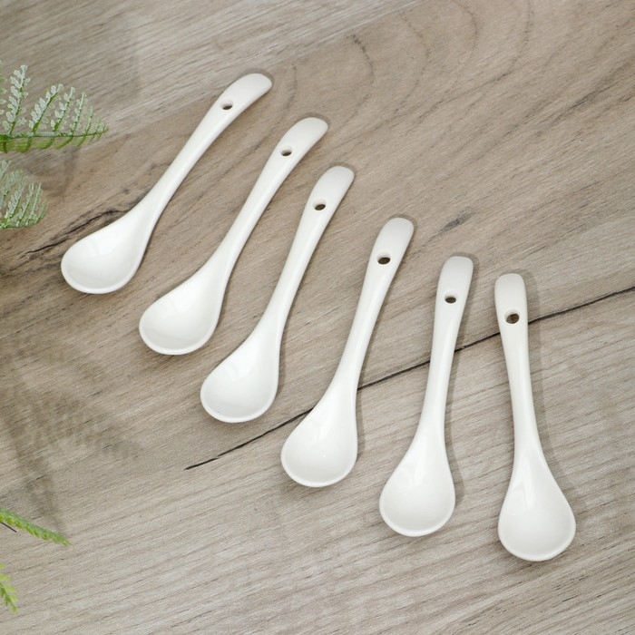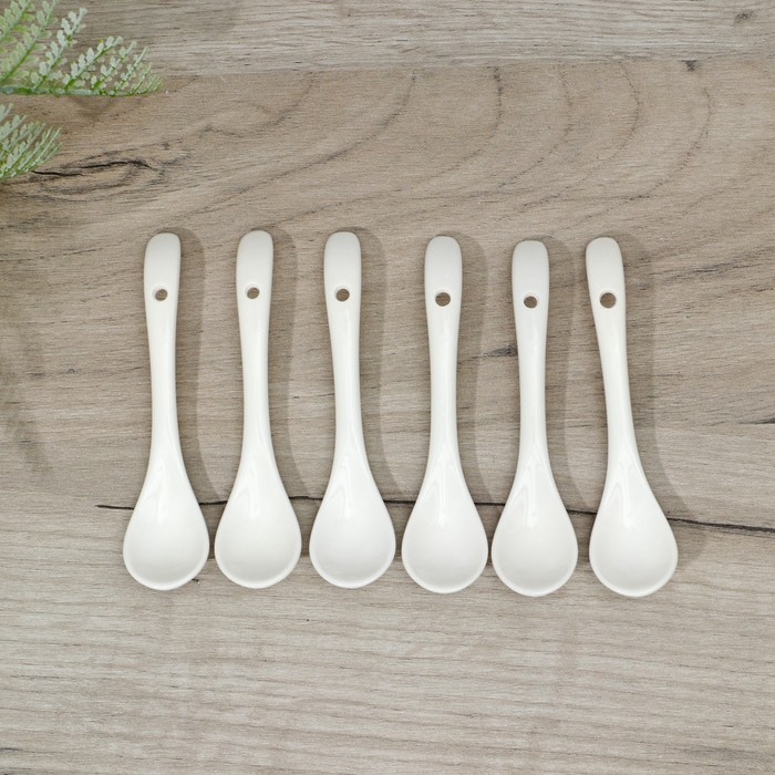 Набор фарфоровых ложек Доляна «Эстет», 6 предметов, 11×2,6×1 см, цвет белый