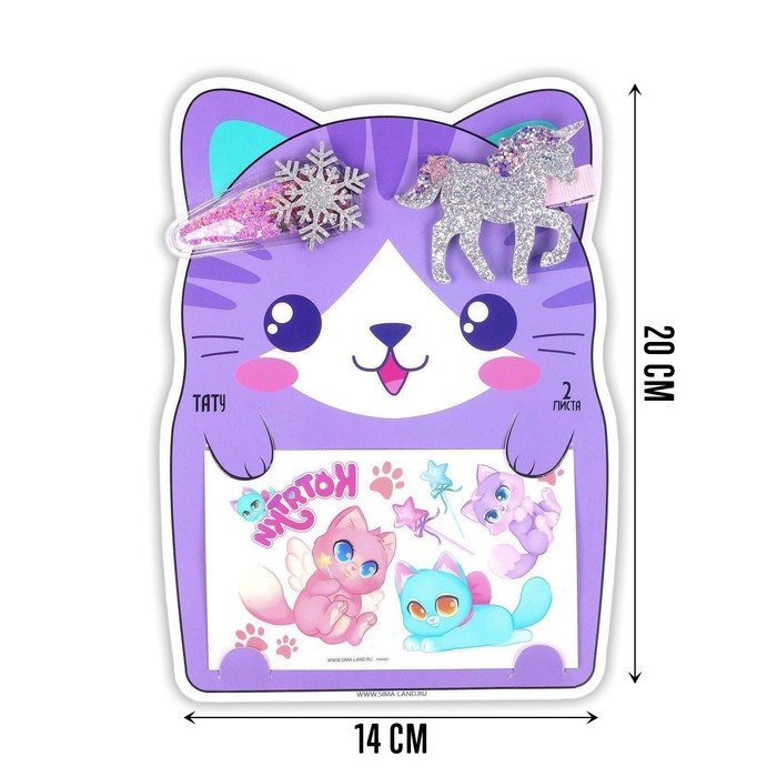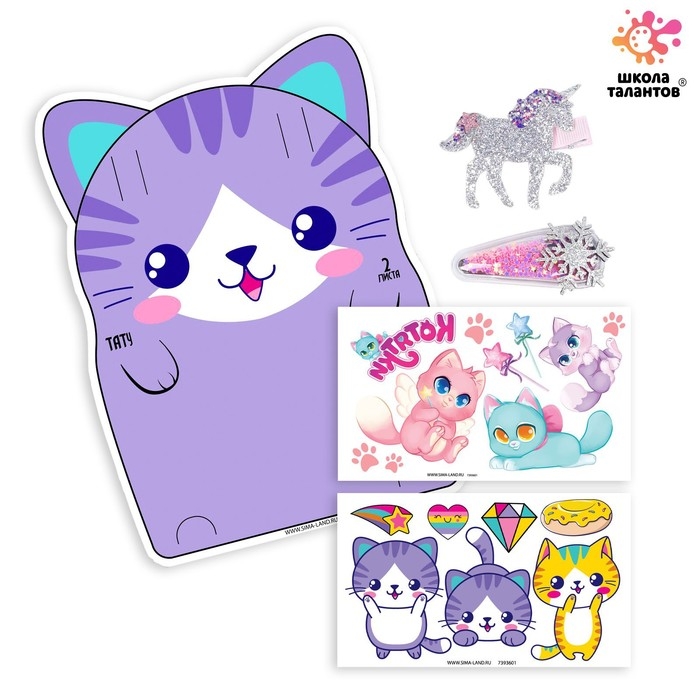 Бьюти-набор понравится каждой девочке. Внутри малышка найдёт лист с тату-переводками и модные аксессуары для волос.