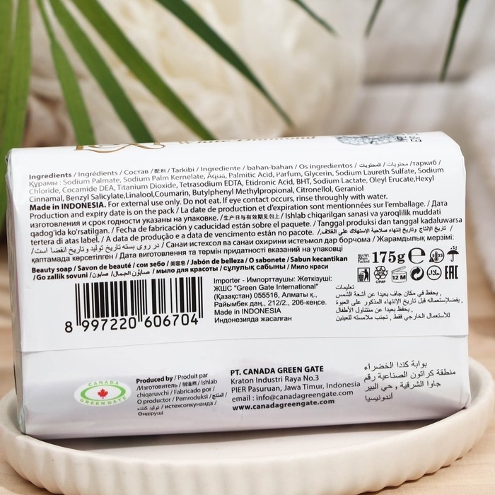 Состав: пальмитат натрия, кокоат натрия, вода, оливат натрия, глицерин, отдушка парфюмерная, масло ши (каритэ), калия олеат, гидролат цветов померанца горького, хлорид натрия, цитрат натрия, тетранатрия этидронат, CI77891, лимонен, линалоол.