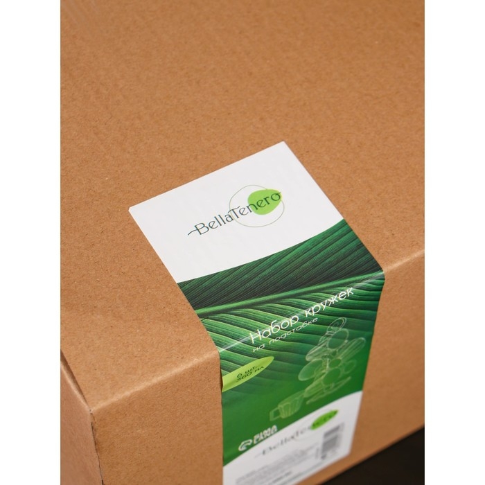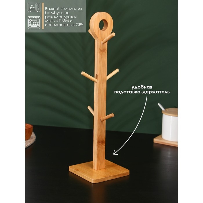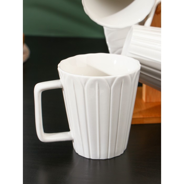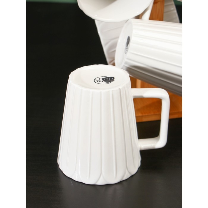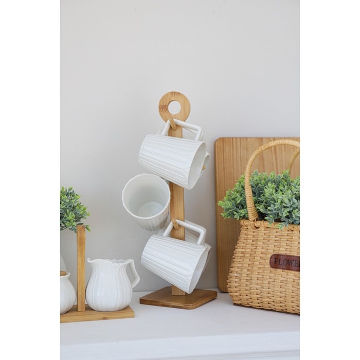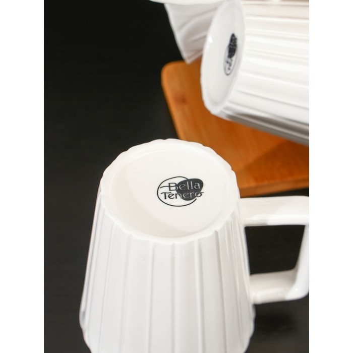 Набор фарфоровых кружек на бамбуковой подставке BellaTenero «Тюльпан», 6 предметов: 300 мл, цвет белый