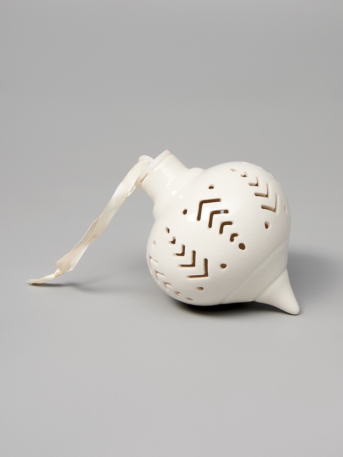 Елочный шар "Орнамент" 10.7х8.5х8.5, 1 LED, LR44x3(в компл.), Т/БЕЛЫЙ