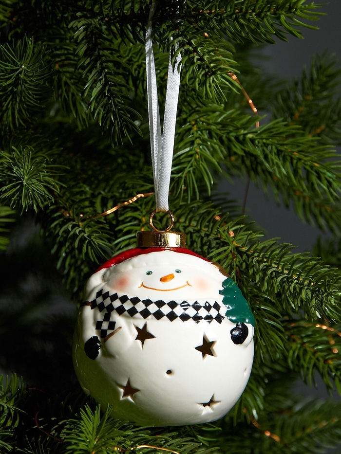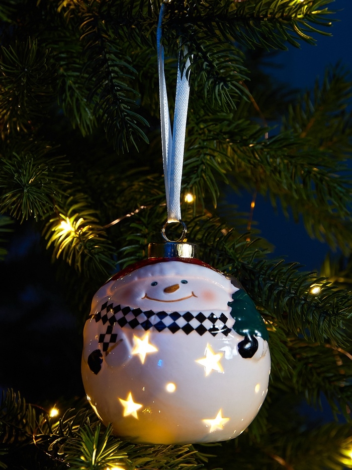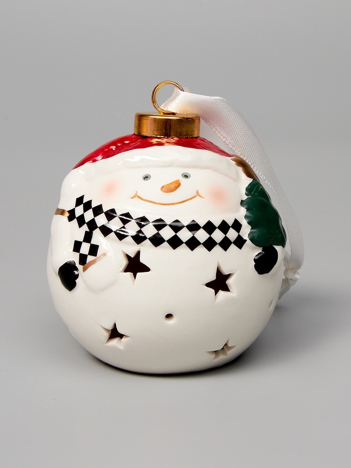 Елочный шар "Снеговик" 10х8.6х8.6, 1 LED, LR44x3(в компл.), Т/БЕЛЫЙ