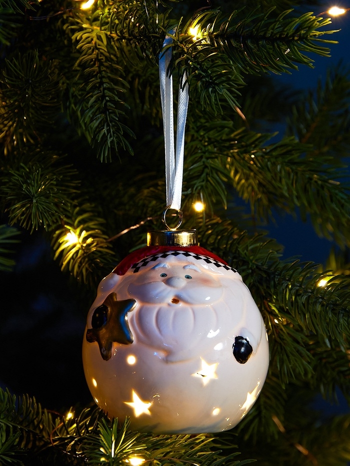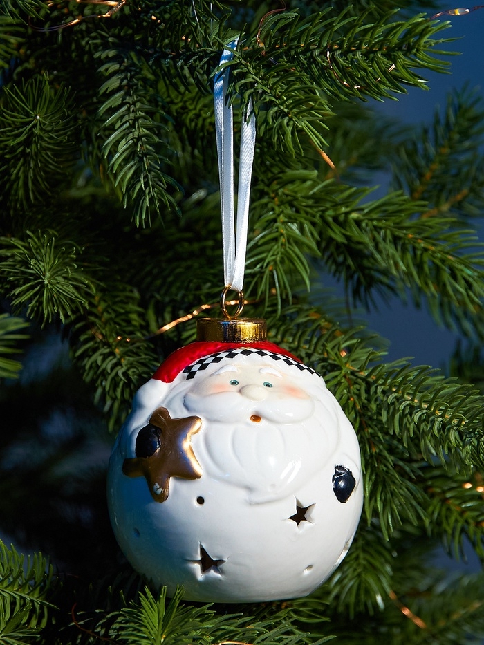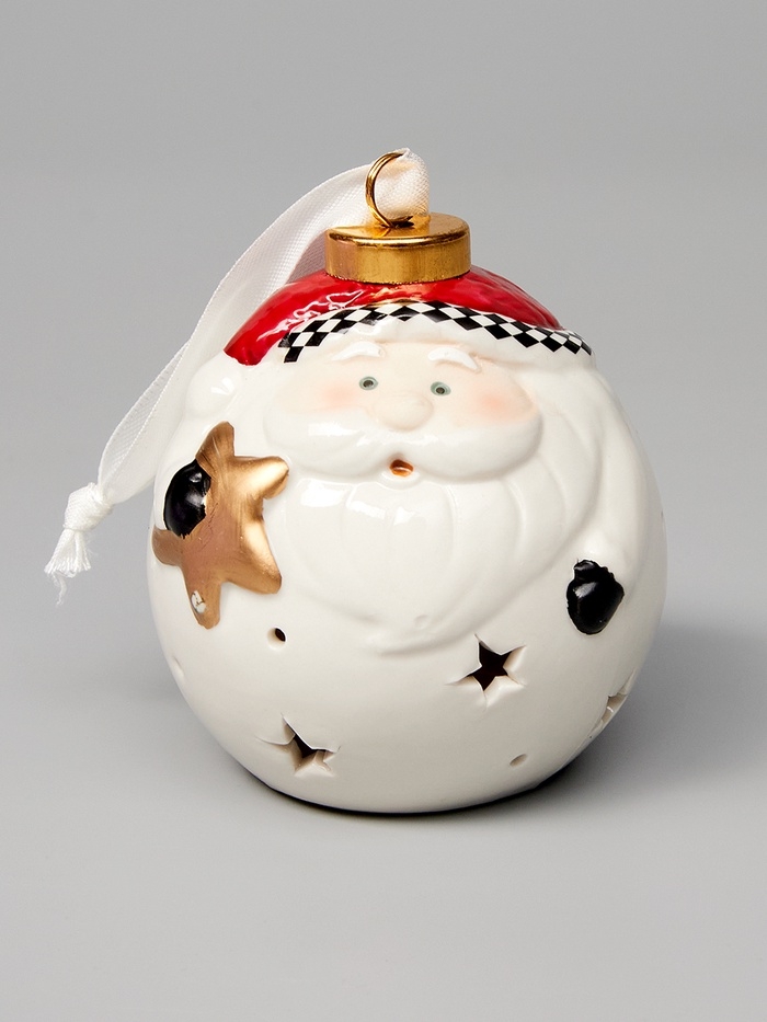 Елочный шар "Дед Мороз" 10х8.6х8.6, 1 LED, LR44x3(в компл.), Т/БЕЛЫЙ