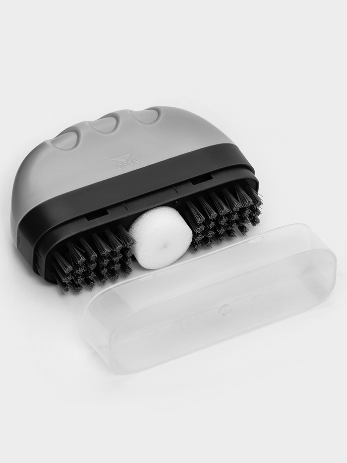 Щётка с моющим средством делает процесс чистки обуви простым и результативным. Встроенный механизм подачи средства минимизирует усилия, а щетина эффективно удаляет загрязнения. После очистки щёткой, пену легко можно убрать с помощью салфетки, оставляя обувь безупречно чистой. Этот компактный инструмент станет надёжным помощником для дома или путешествий.