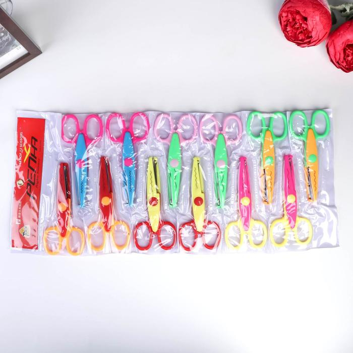 Ножницы рельефные цветные ручки, набор 12 шт МИКС