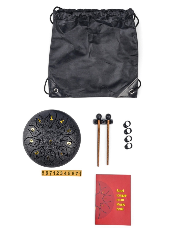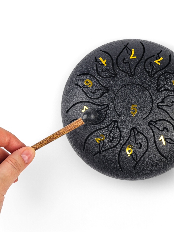 Глюкофон - музыкальный инструмент, дельфин черный, 11 лепестков, 18 х 18 х 11 см