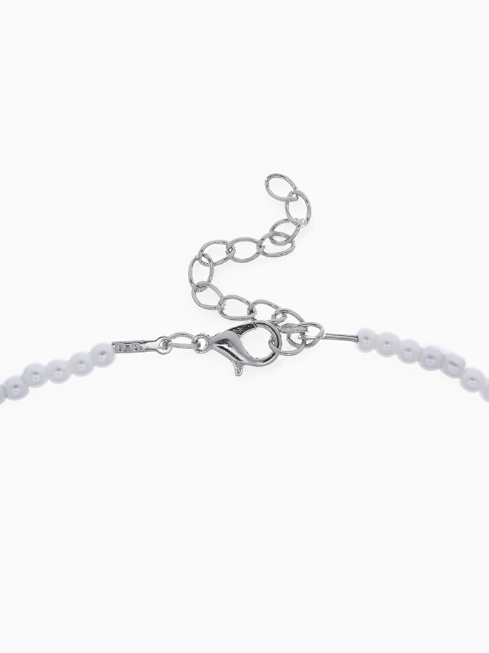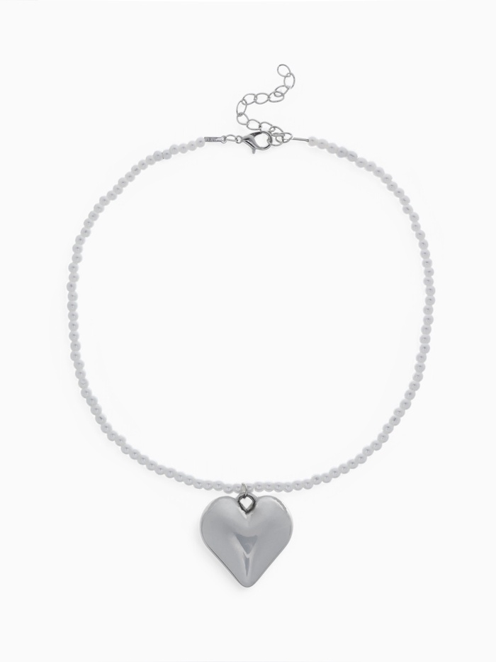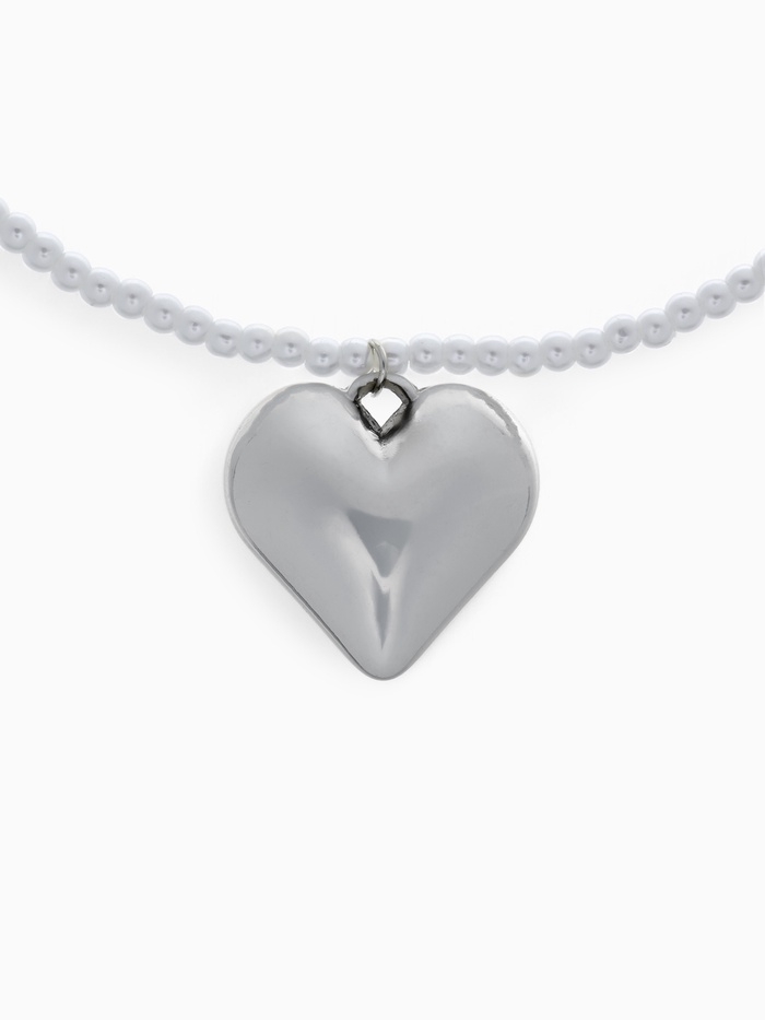 Кулон жемчуг « Сердце» бусина №4, серебряно-белый в серебре, 30 см