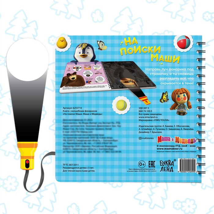 Книга с фонариком «На поиски Маши», 22 стр., 5 игровых разворотов, Маша и Медведь
