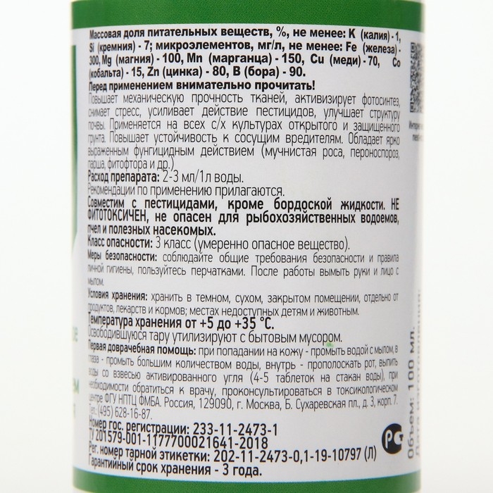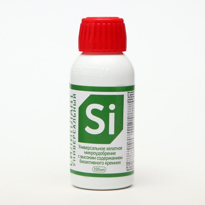 Регулятор роста Силиплант - универсальное удобрение с высоким содержанием биоактивного кремния (Si-7%) , калия (K-1%) и 7-ю микроэлементами в хелатной форме (мг/л): Fe – 300; Mg – 100; Cu – 70-240; Zn – 80; Mn – 150; Co – 15; B – 90. Повышает прочность растений, устойчивость к болезням, вредителям, засухе. Улучшает плодородие почвы.