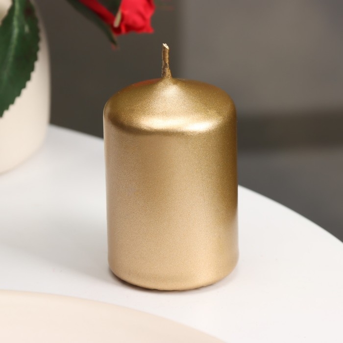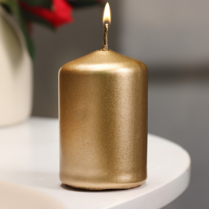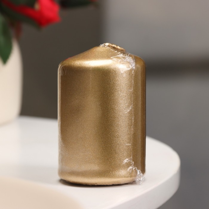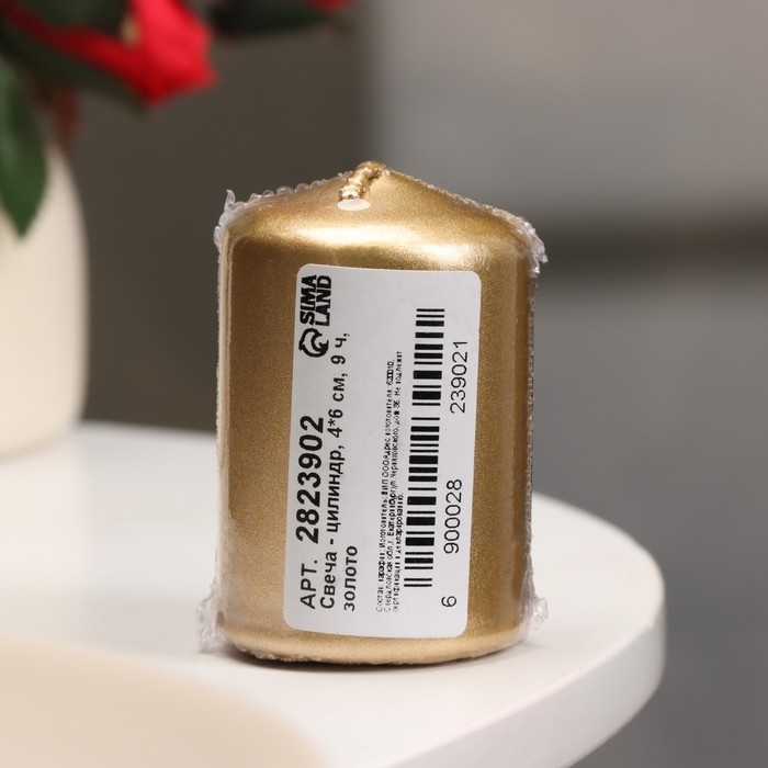 Свеча - цилиндр, 4х6 см, 9 ч, золото