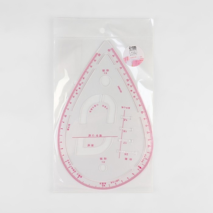 Лекало портновское метрическое «Капля», с проймой, 20,5 × 13,3 см, толщина 0,5 мм, цвет прозрачный