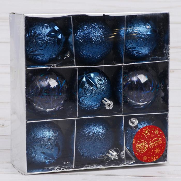 Набор шаров пластик d- 6 см, 9 шт "Фестиваль" синий
