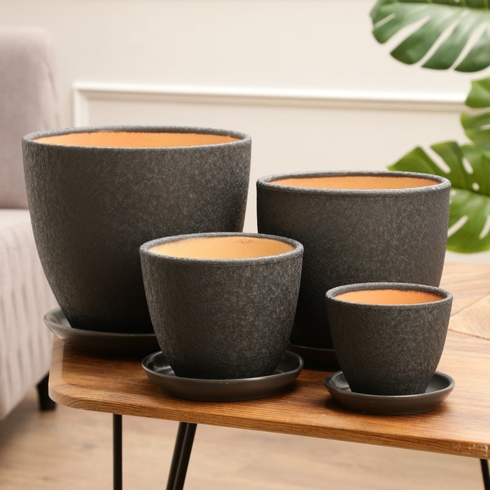 Набор горшков цветочных 4 шт. Шелк серый 0,4 / 1 / 2,5 / 5 л